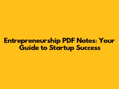 Entrepreneurship PDF Notes: Your Guide To Startup Success