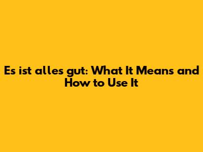 Es Ist Alles Gut: What It Means And How To Use It