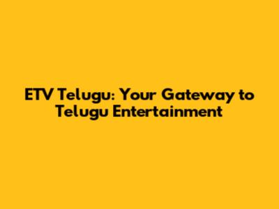 ETV Telugu: Your Gateway To Telugu Entertainment