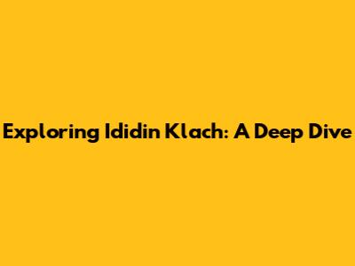 Exploring Ididin Klach: A Deep Dive