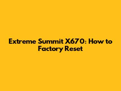 Extreme Summit X670: How To Factory Reset