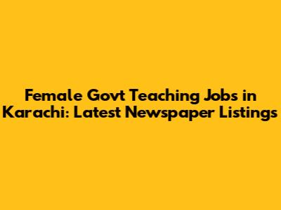 Female Govt Teaching Jobs In Karachi: Latest Newspaper Listings
