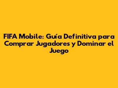 FIFA Mobile: Guía Definitiva Para Comprar Jugadores Y Dominar El Juego