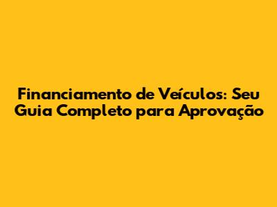 Financiamento De Veículos: Seu Guia Completo Para Aprovação