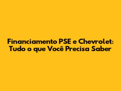 Financiamento PSE E Chevrolet: Guia Completo!