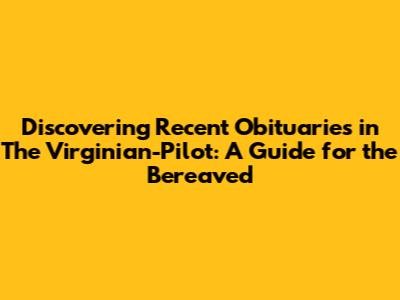 Losing a loved one is an incredibly difficult time, and navigating the process of finding obituaries can add to the stress. If you're looking for recent obituaries in The Virginian-Pilot, you've come to the right place. This guide is designed to help you find the information you need with as much ease as possible during this sensitive period. We understand that connecting with memories and acknowledging the life of someone special is important, and obituaries serve as a vital part of that process. Whether you're seeking details for a funeral service, wanting to express condolences, or simply honoring a life lived, The Virginian-Pilot offers a valuable resource for obituaries in the Hampton Roads region. We'll walk you through the best ways to access these notices, ensuring you can find the information you're looking for without unnecessary complications. This isn't just about listing names; it's about understanding the significance of these announcements and how they help communities remember and celebrate their members.