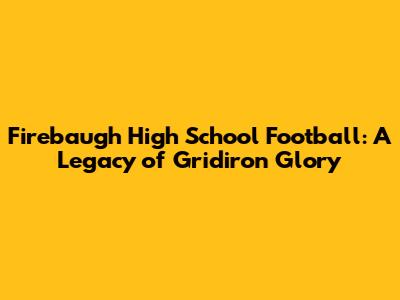 Firebaugh High School Football: A Legacy Of Gridiron Glory