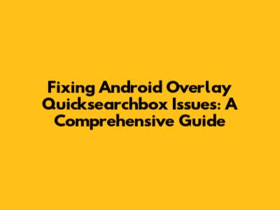 Hey guys! Let's dive into the often-encountered issue of com.android.overlay.quicksearchbox on Android devices. This is a common problem that can manifest in various ways, from unexpected behavior to frustrating errors. But don't worry, we're going to break down what this is all about, why it's happening, and, most importantly, how to fix it. This comprehensive guide will walk you through everything you need to know to get your device back on track. We'll cover the basics, delve into the potential causes, and offer step-by-step solutions to ensure you can resolve this issue, no matter your technical expertise. We will begin by demystifying what com.android.overlay.quicksearchbox actually is and its function within the Android system. We'll then explore the common symptoms you might experience when things go wrong and why they occur. Finally, the core of our guide lies in providing practical, actionable solutions, from basic troubleshooting steps to more advanced techniques. This ensures you're equipped to handle any challenge related to com.android.overlay.quicksearchbox. So, let’s get started and transform those frustrating moments into smooth, efficient Android experiences.