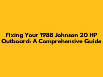 Fixing Your 1988 Johnson 20 HP Outboard: A Comprehensive Guide
