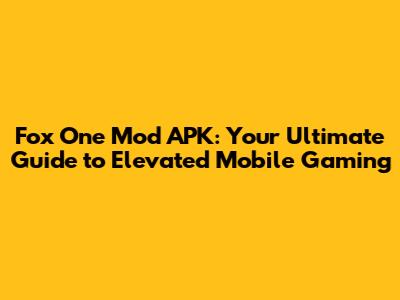 Fox One Mod APK: Your Guide To Enhanced Mobile Gaming