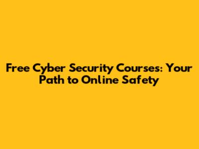 Free Cyber Security Courses: Your Path To Online Safety