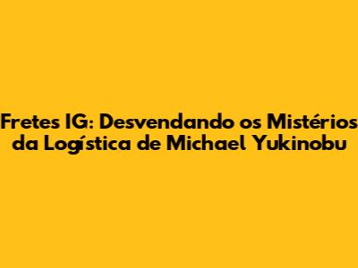 Fretes IG: Desvendando Os Mistérios Da Logística De Michael Yukinobu