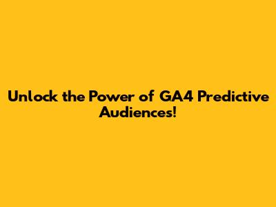 Unlock the Power of GA4 Predictive Audiences!