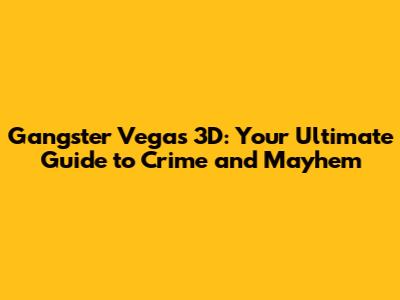 Hey guys, welcome to the gritty world of Gangster Vegas 3D, where the neon lights of Sin City cast long shadows over a landscape of crime, chaos, and opportunity. This isn't just another game; it's a full-blown dive into the life of a gangster, where you'll build your empire, take on rival gangs, and experience the thrill of the underworld. So, buckle up, because we're about to explore everything you need to know to dominate the streets of Vegas.