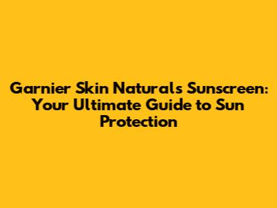Garnier Skin Naturals Sunscreen: Your Ultimate Guide