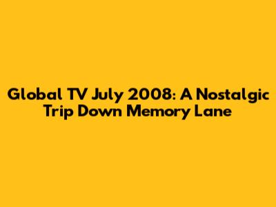 Hey everyone! Buckle up, because we're about to take a totally awesome trip back in time to July 2008! That's right, we're diving deep into the world of Global TV July 2008, and trust me, it's a nostalgic ride you won't want to miss. Think back – what were you doing? What shows were you glued to? July 2008 was a pivotal moment in television history, marked by some incredible programming that captured our hearts and kept us entertained. Whether you were a fan of reality TV, gripping dramas, or hilarious comedies, Global TV had something for everyone. This article is your comprehensive guide to the highlights, the must-watch shows, and a general vibe of what was on our screens that month. Let’s unearth some classic TV moments, shall we?