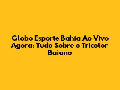 Globo Esporte Bahia ao vivo agora! Fala, galera tricolor! Se você é torcedor do Bahia e não quer perder nenhum lance do seu time do coração, você está no lugar certo. Neste artigo, vamos te mostrar como assistir aos jogos do Bahia ao vivo, os melhores momentos, as últimas notícias e tudo o que você precisa saber sobre o Esporte Clube Bahia. Prepare a pipoca, chame os amigos e vamos juntos nessa jornada!