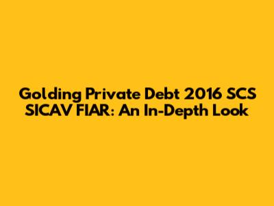 Let's dive deep, guys, into the world of Golding Private Debt 2016 SCS SICAV FIAR. It sounds like a mouthful, right? But trust me, understanding this investment vehicle can be super beneficial, especially if you're into private debt. We’re going to break down what it is, how it works, and why it might be something you'd want to consider. So, grab your favorite beverage, sit back, and let’s get started!