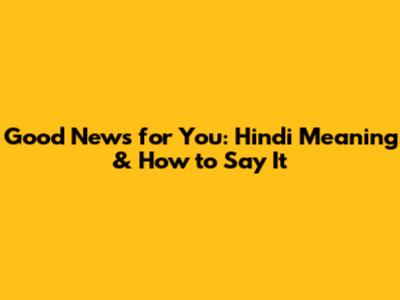 Good News For You: Hindi Meaning & How To Say It