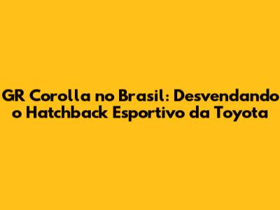 Preço do GR Corolla no Brasil: Quanto Custa a Adrenalina?