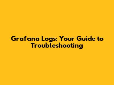 Grafana Logs: Your Guide To Troubleshooting