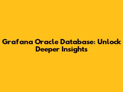What's up, tech wizards! Today, we're diving deep into something super cool that can seriously level up your Oracle database game: Grafana and Oracle Database integration. If you're managing Oracle databases, you know how crucial it is to keep a hawk's eye on performance, health, and potential bottlenecks. Traditionally, this has involved a mix of Oracle-specific tools and maybe some generic monitoring solutions. But guys, what if I told you there's a way to get a unified, visually stunning, and incredibly powerful dashboard for all your Oracle metrics? That's where Grafana swoops in like a superhero! We're talking about taking your Oracle database monitoring from good to absolutely phenomenal. Imagine seeing all your critical Oracle performance indicators – like query execution times, connection counts, buffer cache hit ratios, and redo log waits – displayed in real-time, customizable graphs and charts. This isn't just about looking pretty; it's about gaining actionable insights that help you proactively address issues before they impact your users. We'll explore how to set this up, what kind of amazing visualizations you can create, and why this combo is a game-changer for anyone serious about Oracle database performance. Get ready to transform the way you monitor your Oracle databases, making your life easier and your systems run smoother than ever. Let's get this party started!