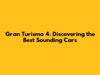 Alright, let's get to the good stuff! Hereâs a rundown of some of the top contenders for the best sounding car in Gran Turismo 4. Keep in mind, sound is subjective, so what revs my engine might not rev yours, but these are some universally praised vehicles.