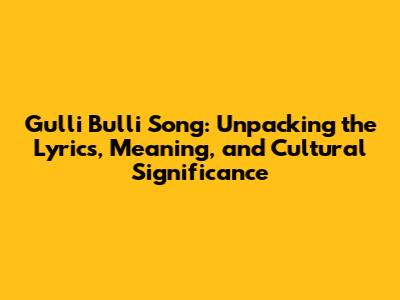 Gulli Bulli Song: Lyrics, Meaning & Cultural Impact