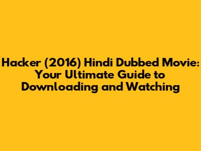 Hacker (2016) Hindi Dubbed Movie: Download & Watch