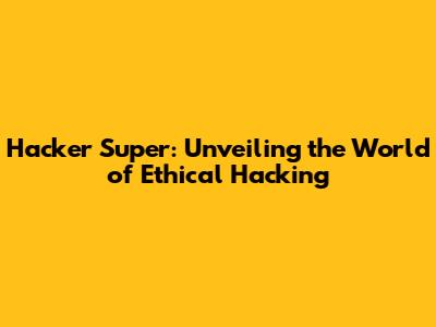 Hacker Super: Unveiling The World Of Ethical Hacking