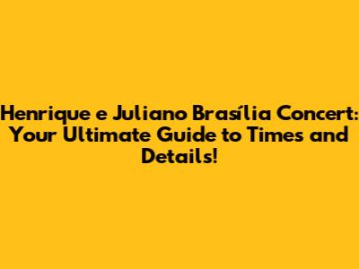 Unveiling the Henrique e Juliano Brasília Concert Schedule: What You Need to Know