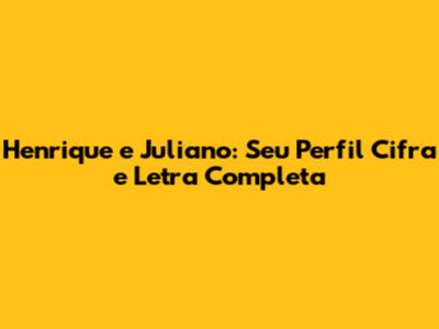 Henrique E Juliano: Seu Perfil Cifra E Letra Completa