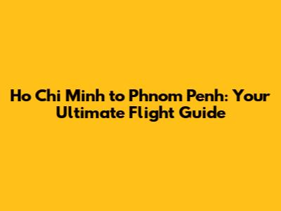 Ho Chi Minh To Phnom Penh: Flight Guide