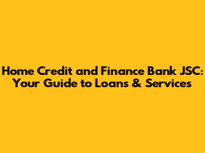Hey guys! Ever heard of Home Credit and Finance Bank JSC? If you're looking for financial solutions, especially when it comes to loans and banking services, this might be a name you'll want to familiarize yourself with. Let's dive into what Home Credit Bank is all about, its history, the services it offers, and why it could be a good option for you.