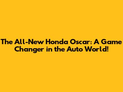 The All-New Honda Oscar: A Game Changer in the Auto World!