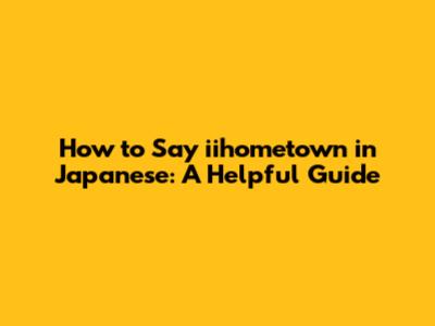 How To Say 'iihometown' In Japanese: A Helpful Guide