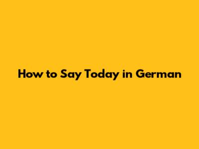 How To Say Today In German