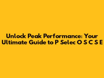 Why P Selec O S C S E Matters for Your Performance