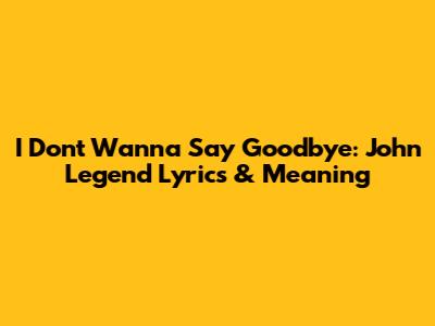 Alright, music lovers! Let's dive deep into the soulful world of John Legend and explore the heartfelt meaning behind his song, "I Don't Wanna Say Goodbye." This track is a powerful ballad that captures the raw emotion of a relationship on the brink, and we're going to break down what makes it so special. Whether you're a die-hard John Legend fan or just discovering his magic, get ready to connect with the lyrics on a whole new level. So, grab your headphones, settle in, and let's unravel the story behind this unforgettable song.