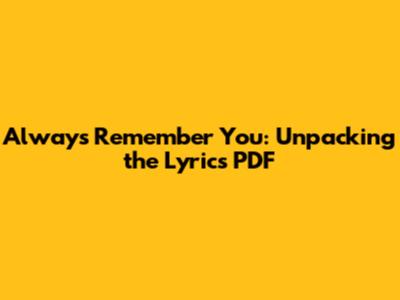 I Will Always Remember You Lyrics PDF Download