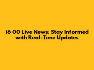 I6 00 Live News: Breaking Updates And Coverage