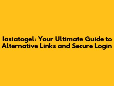 Iasiatogel: Your Guide To Alternative Links & Secure Login