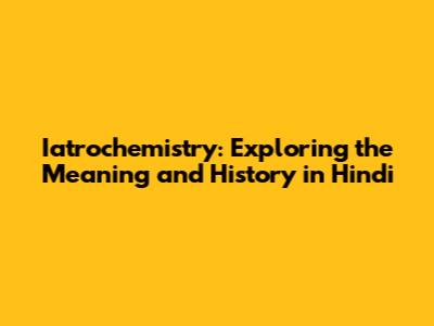 Iatrochemistry: Meaning, History, And Significance In Hindi