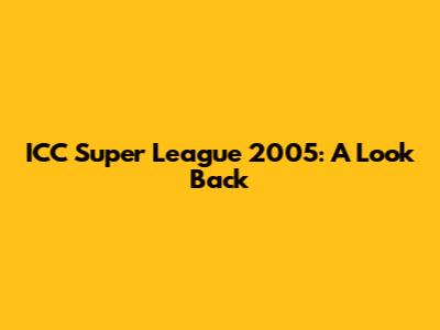 ICC Super League 2005: A Look Back