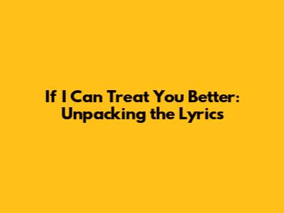 If I Can Treat You Better: Unpacking The Lyrics