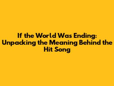 If The World Was Ending: Meaning Of The Song