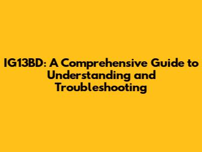 IG13BD System: A Comprehensive Guide