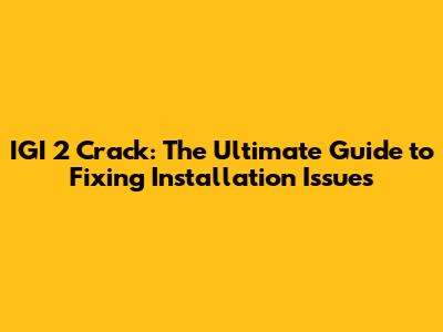 IGI 2 Crack: The Ultimate Guide To Fixing Installation Issues