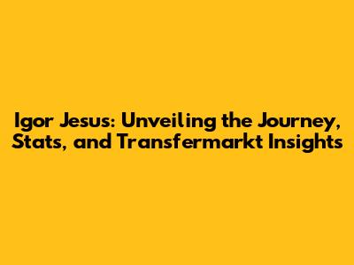 Igor Jesus is a name to remember. From his Transfermarkt profile to his on-field performances, his journey is one of dedication and potential. Keep an eye on this rising star! In conclusion, the career of Igor Jesus is a promising one, marked by dedication, hard work, and a passion for the game. From his early days in youth academies to his current status as a professional player, he has consistently demonstrated his talent and commitment to excellence. His Transfermarkt profile provides valuable insights into his market value, transfer history, and career statistics, while his on-field performances showcase his skills and abilities. This comprehensive overview of his journey highlights the key moments and decisions that have shaped his career, offering a glimpse into the potential he holds for the future. As he continues to develop and grow as a player, Igor Jesus is sure to make a significant impact on the world of football.