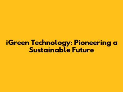 The Future of iGreen Technology and Sustainable Innovation